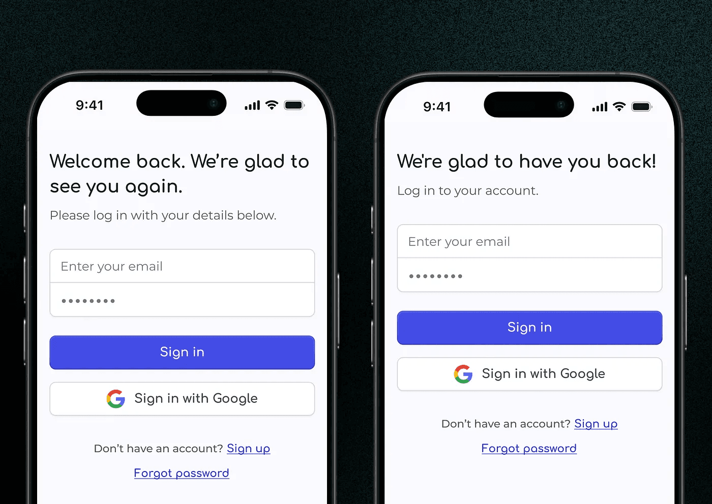 “Welcome back! Please enter your login credentials to continue.” (Professional)